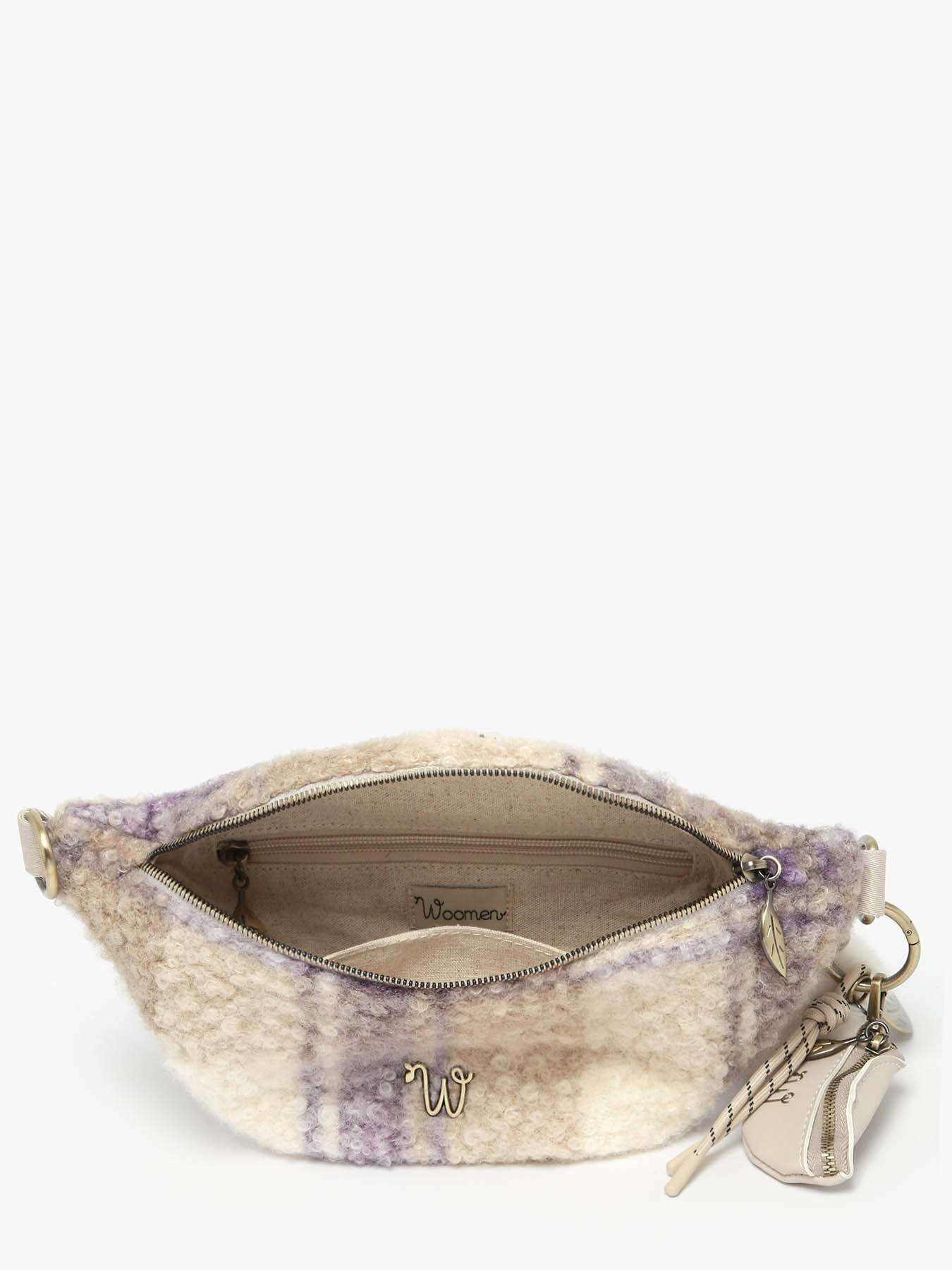 Le sac banane WOOMEN de la ligne ALYSSUM est l’un des modèles intemporels de la marque. Il se distingue par son bijou de sac composé d’un pompon, d’un mini sac banane et d’une feuille. Sa bandoulière réglable et amovible, ornée d’un rappel de la marque Woomen, apporte une touche supplémentaire d’élégance. Confectionné en polyester avec une doublure en coton et lin, il offre une fermeture zippée sécurisée, un intérieur fonctionnel avec une poche simple, une poche zippée et un compartiment unique, alliant style et praticité au quotidien.
