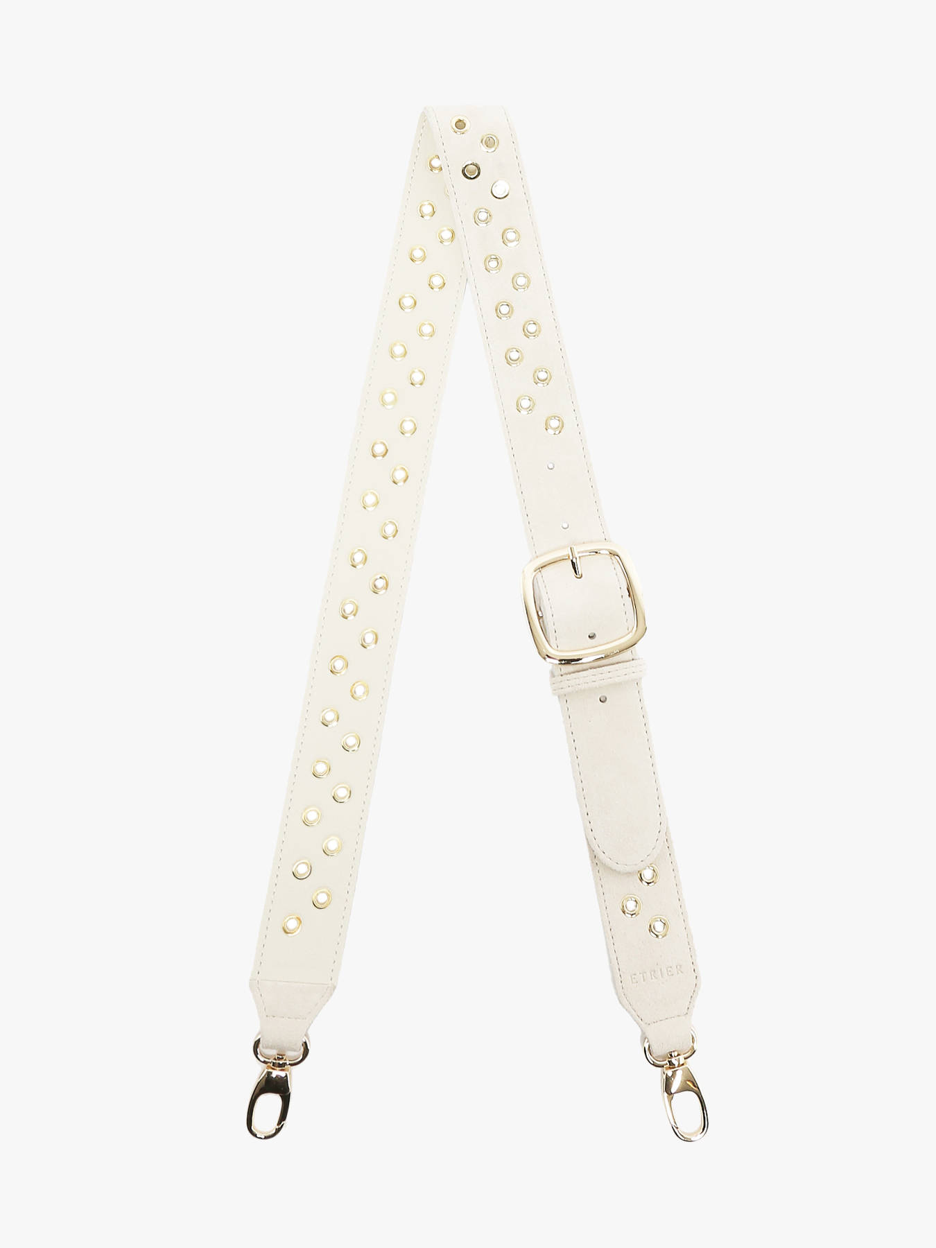 Accessoirisez les modèles de la ligne avec cette bandoulière ornée d'œillets. Pour un look plus audacieux, elle est disponible dans deux coloris également. Modèle réglable doublé en cuir lisse.