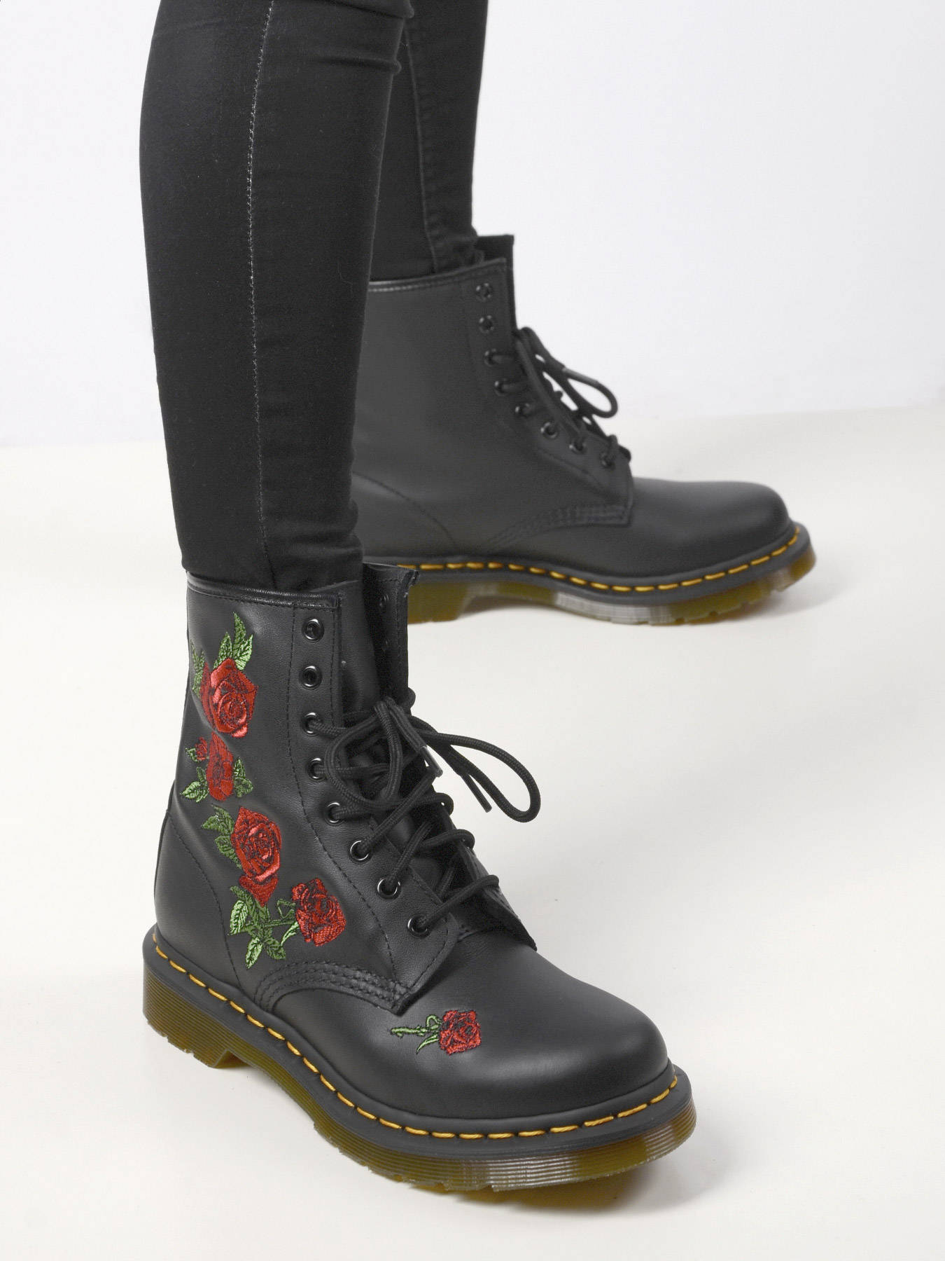 Pour un look unique et plein de caractère, optez pour ces bottines 1460 Vonda Dr Martens. Ce modèle iconique de la marque allemande a été revisité pour un style encore plus branché. Craquez pour son cuir de qualité agrémenté de roses rouges brodées sur le flan de la chaussure. Sa semelle en caoutchouc, ses surpiqûres jaunes et sa languette griffée Dr Martens font de cette bottine femme un indémodable. Accordez ces Dr Martens femme à une tenue originale lors de vos journées au boulot et vous réveillerez le look rock et chic qui sommeille en vous.