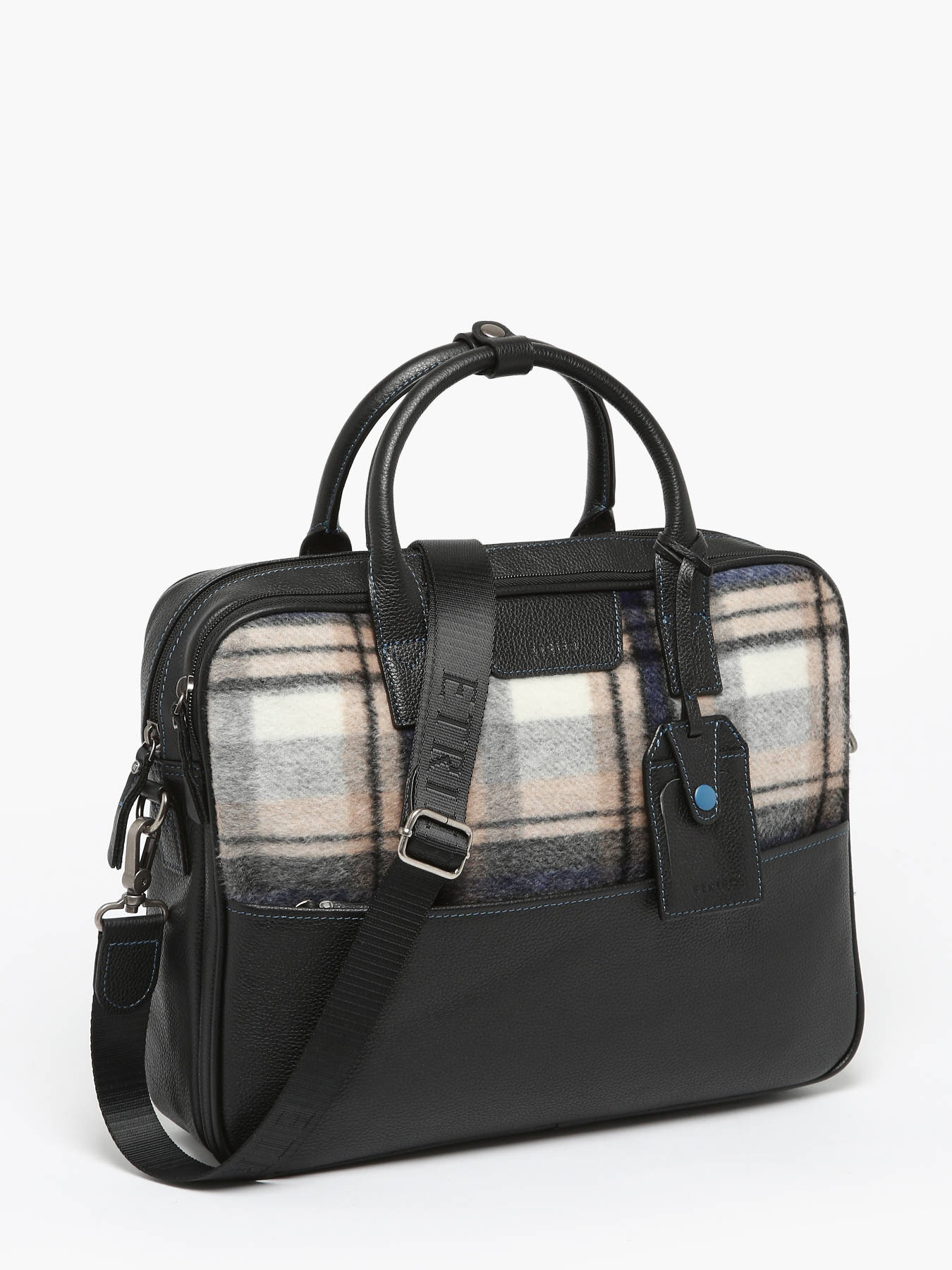 Ce porte-document moderne réalisé en flanelle imprimé Tartan est la pièce mode qu’il vous faut cette saison. Doté de deux compartiments, il sera parfait pour transporter vos documents, ainsi qu’un PC 15 pouces. Son coloris neutre lui offre une allure chic et intemporelle. Garni de cuir, c’est un modèle de qualité, garant de notre savoir-faire maroquinier.