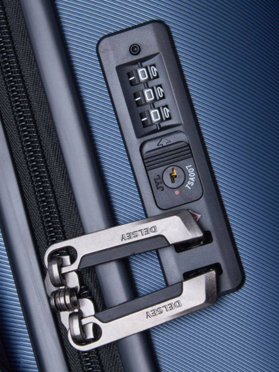 Valise rigide réalisée en ABS et polycarbonate signée de la marque Française Delsey. Cette valise Air Armour 77 cm extensible sera parfaite pour un séjour de deux semaines voire plus. Ergonomique, cette valise Delsey est dotée de quatre roues doubles, deux poignées de portage et une poignée trolley réglable en hauteur. Elle se ferme à l'aide d'une serrure à code avec système TSA pour les autorités americaines.